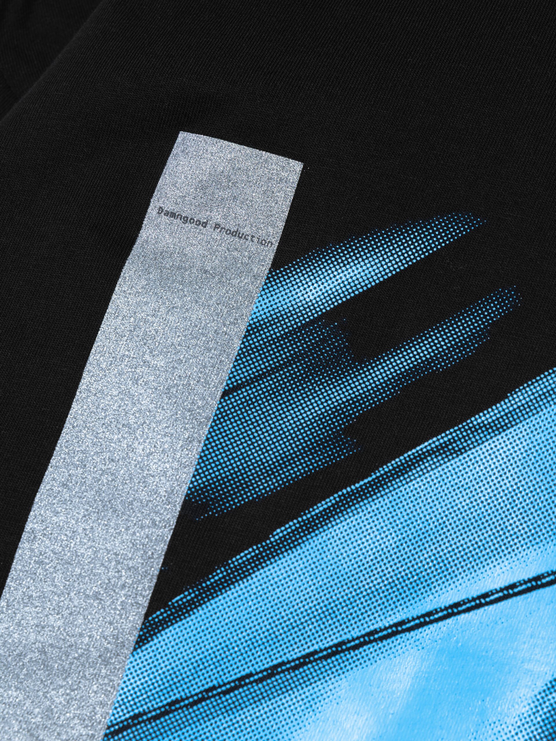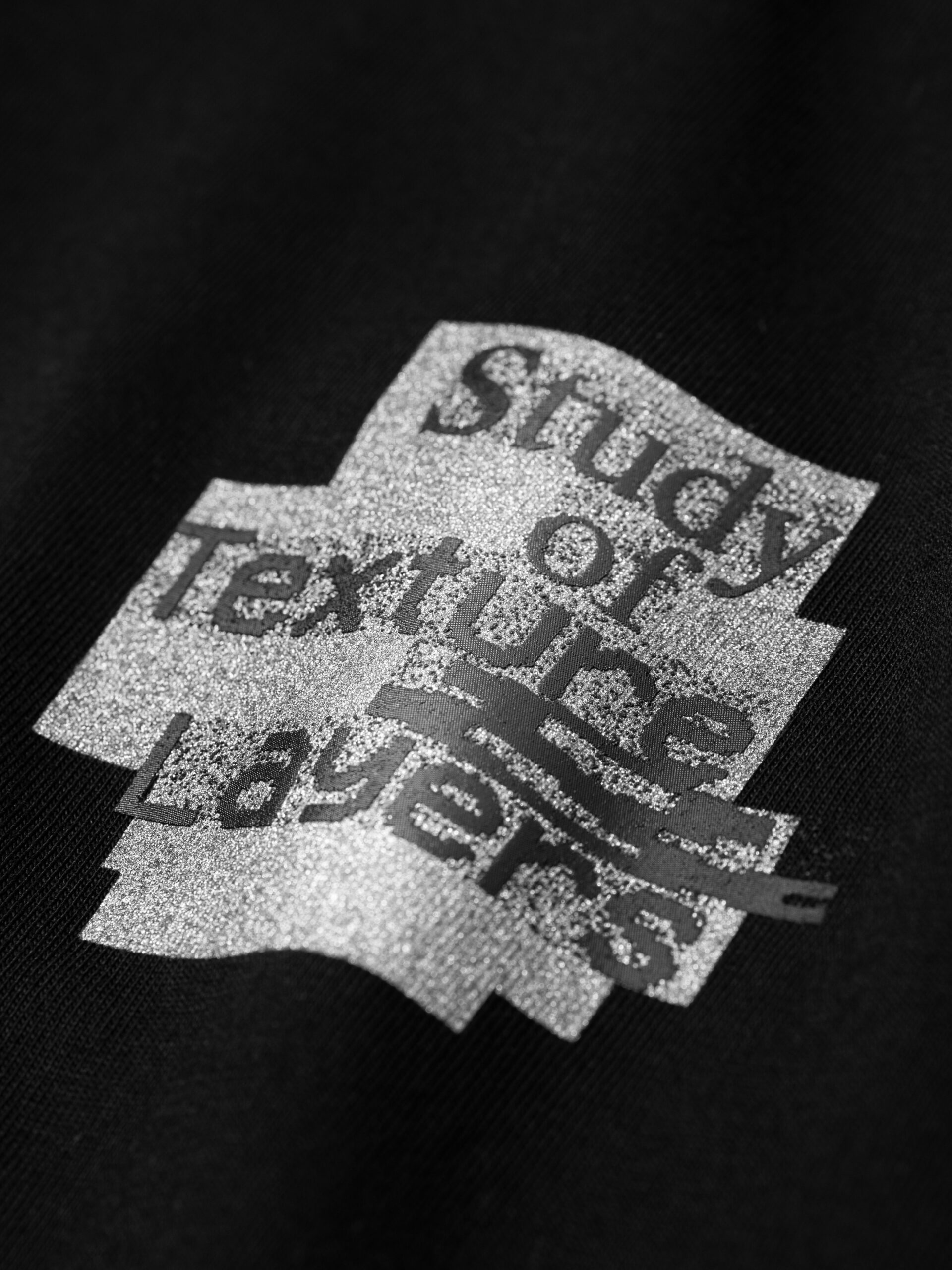 フロントはグリッタープリントの上にブラックのテキストを重ね、