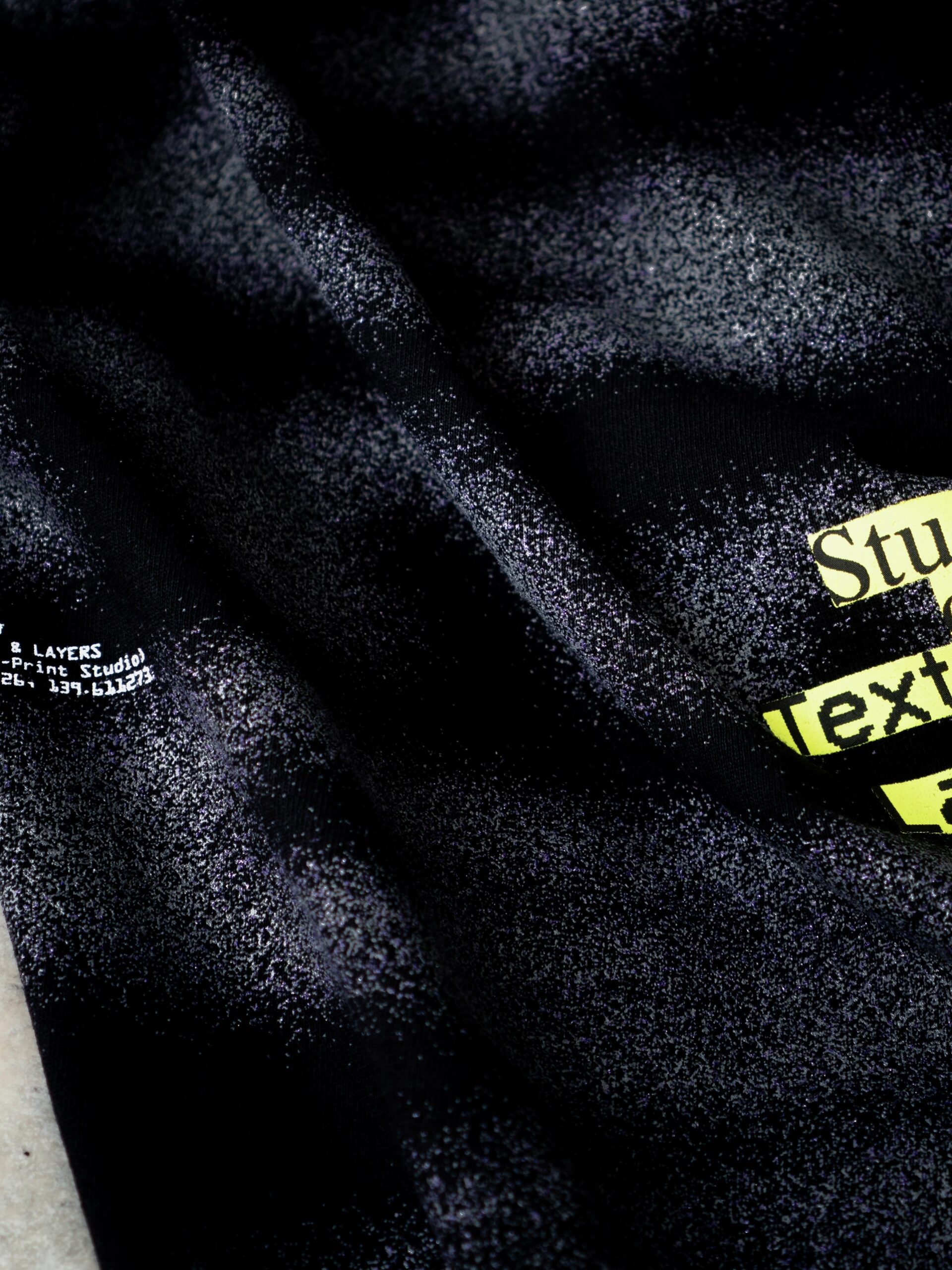 極小の粒子によってテキストが浮かび上がるように構成したプリント。