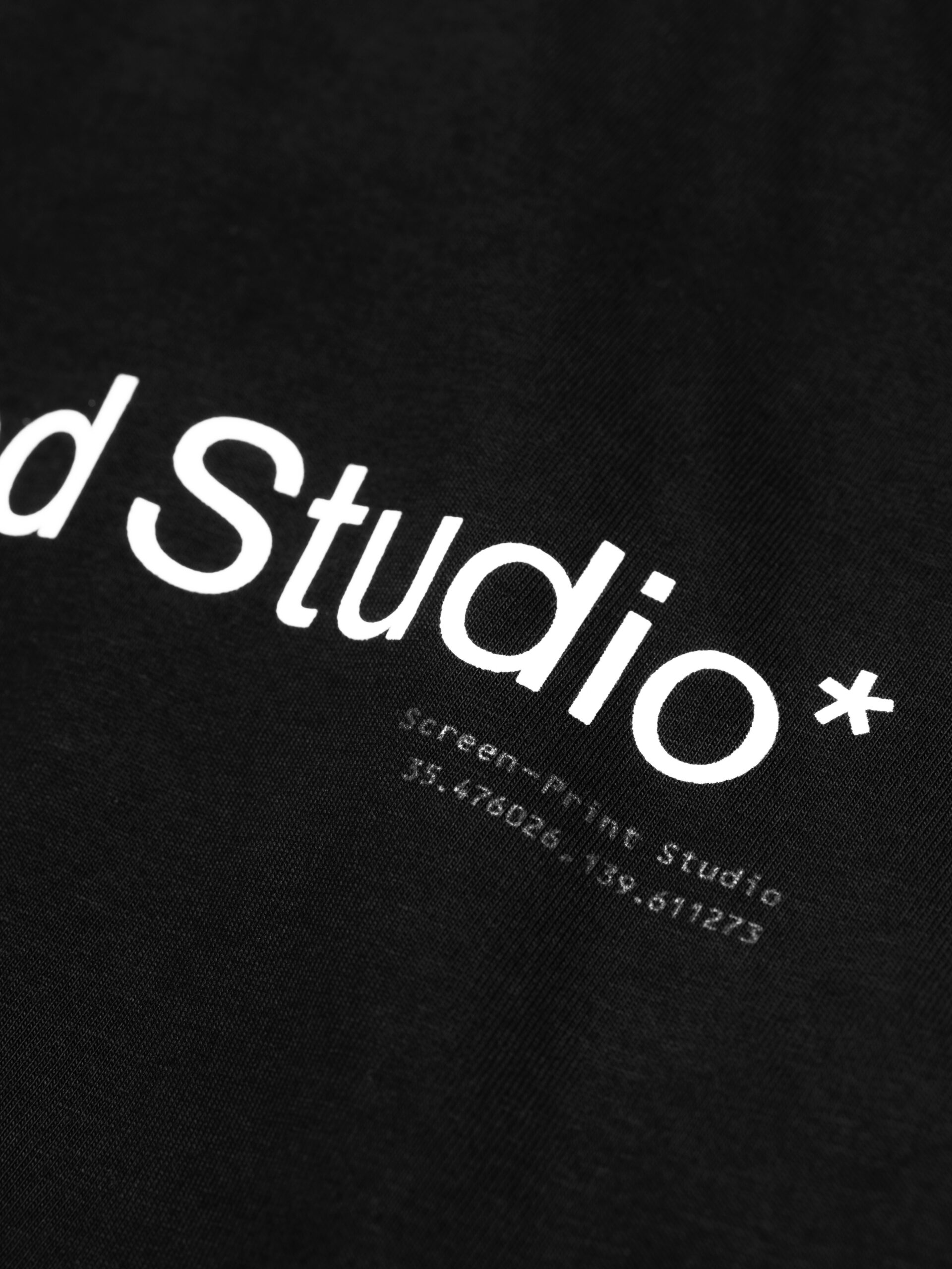フロントとバックのロゴは、マットな質感のプリントの上に光沢インクを重ね、